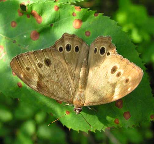 We walked the trails, finding many interesting plants along the way, including this Marsh Cinquefoil (Comarum palustre). I photographed a few butterflies and dragonflies including this butterfly which seems to be a Northern Pearly-Eye.