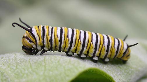 Peter – You know, it’s actually difficult to find Monarch caterpillars unless you’re looking for them, so the camouflage may be better than it seems. Milkweed leaves do turn yellow and the colour isn’t really all that far off from that of the yellow banding on these caterpillars. The younger ones are more subtle in colour and even more difficult to find than the adults (not to mention their small size).