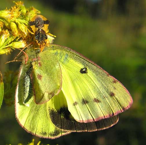 Last note — the photo below is of a female Phymata that has captured a butterfly. As you can see, these insects can easily capture other insects much larger than themselves. I often find them struggling to haul the largest of Bumblebees up onto a flower top. I know that some of you are probably wondering why I might be fascinated by predatory insects — especially ones that are as lethal as these. The thing is, these predators are part of the food chain, and much as they kill the more pleasing insects such as butterflies, honeybees and bumblebees, they also kill many kinds of wasps and flies that attack and kill bees, or lay eggs that parastize those same insects. So, they are actually helping the bees even while they may also be preying upon them. This summer, I’m going to try to do a bit of survey work here at the farm in an effort to try to figure out the type and number of prey that might be captured by Phymata in a typical oldfield plot. I’ll try to report back with my findings a little later this summer.