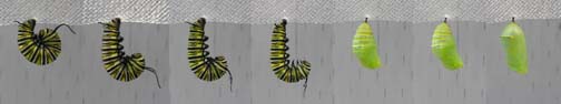 Excellent photo sequence. I can really see how the caterpillar relaxes and the antennae hang limply as it prepares itself to transform. What an amazing process. The movie is so lovely. Watching those monarch wings open and close, while she is perched on your hand is really lovely. Wow, Bev.