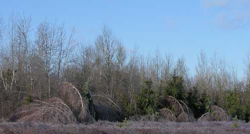 Lucky? What could be so lucky about having many of your birch trees bent over until they look more like croquet hoops??? (click on image for larger view)