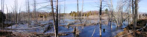 robin – I just shot that handheld. I didn’t spend much time with the stitching this time either as you can see if you study the foreground a bit — there are a few branches going off into nowhere. I just replaced the link to the smaller version with a larger one “original” on PBase, so you might not have seen that. The original size is too big for most screens but shows the view off better. When I shoot for panorama, I try to keep the camera at as close to the same height in front of me as possible, and just turn the camera in my hands as though it were on a tripod. Btw, I’m just too lazy to carry a tripod around with me, so all of my shooting is handheld. I loved that little landscape too. What was incredible about it was the brilliance. It very much caught my eye from a distance — almost as though someone had left a scarlet piece of velvet draped over that tree root. I don’t think I’ve ever seen fire moss looking so bright and must attribute that to the moisture and cold without freezing this winter.